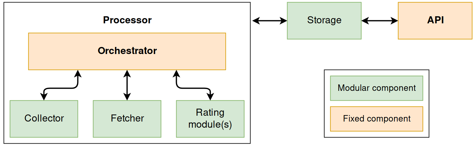 收集到的数据随后传递给 **rating modules(评级模块)**(可以同时启用多个模块)。这些模块将用户定义的评级规则应用于收集到的数据。