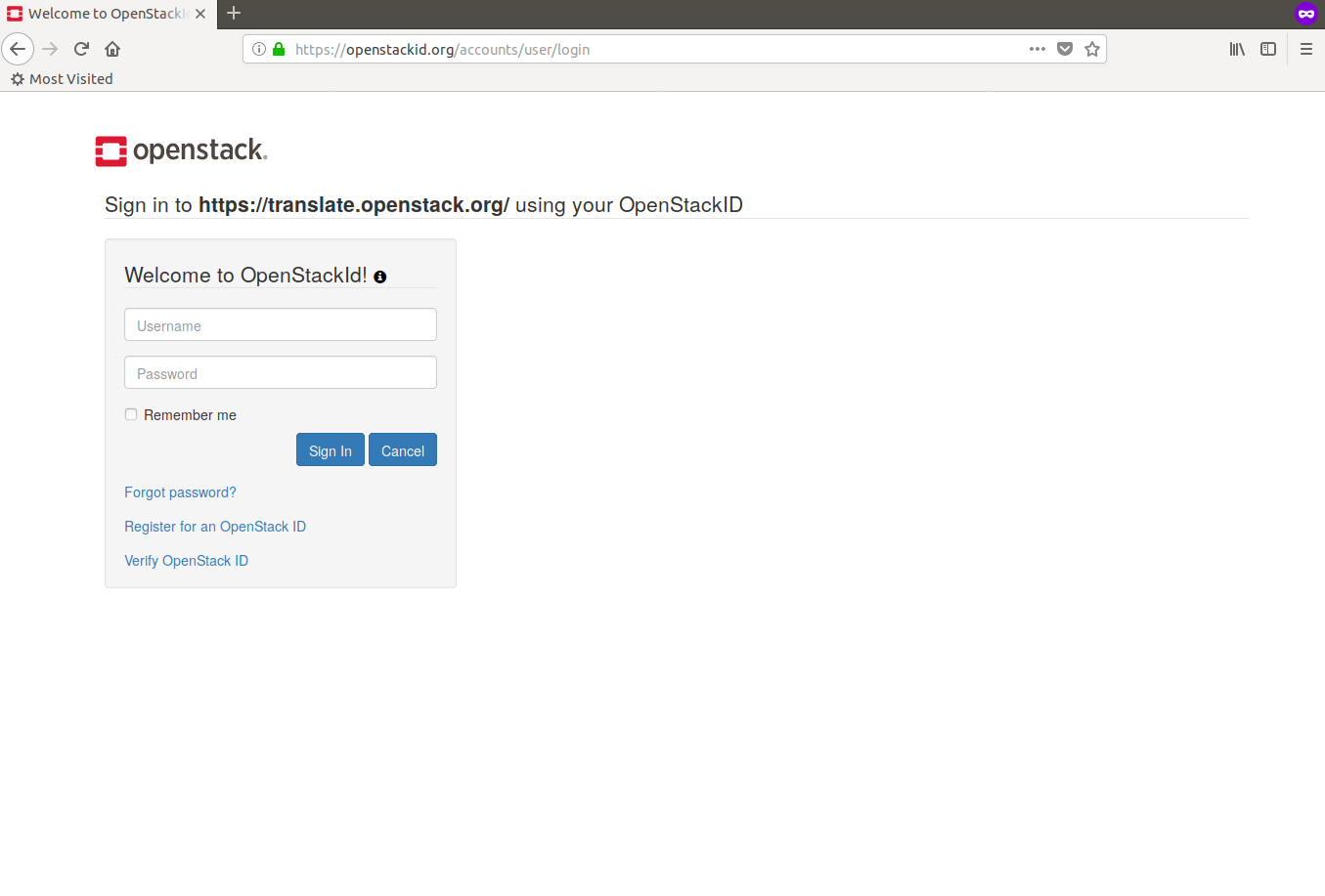 要进行注册和登录,您需要一个 开放基础设施基金会帐户。点击 translate.openstack.org 上的登录,并按照申请您的 Zanata 资料的过程进行操作。