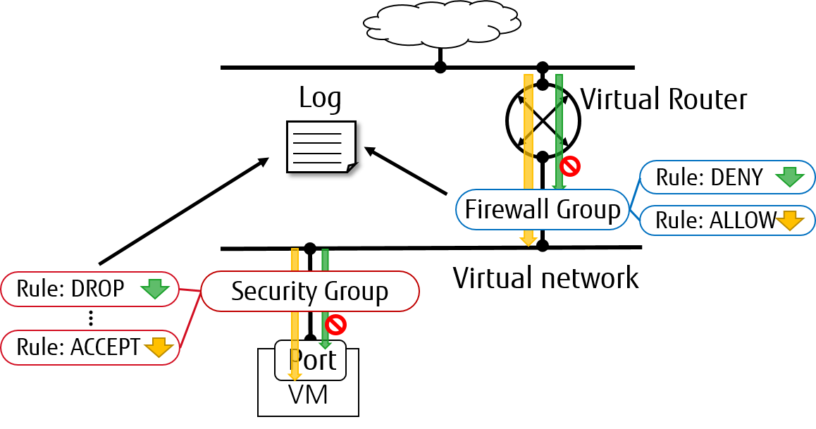 从 Rocky 版本开始,ML2/OVS 驱动支持 security_group 和 firewall_group 作为 Neutron 数据包日志记录框架中的资源类型。