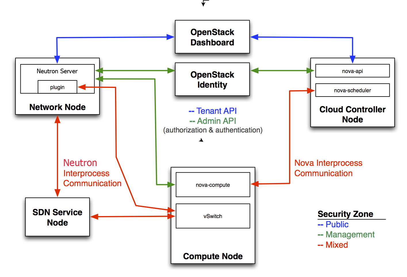 OpenStack 网络节点:管理、客户,以及根据使用的 neutron-plugin 插件,可能包括公共。