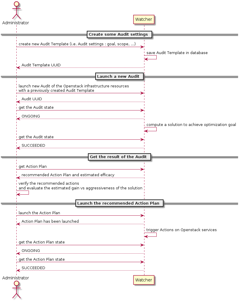下图显示了 管理员 与 Watcher 系统之间的主要交互